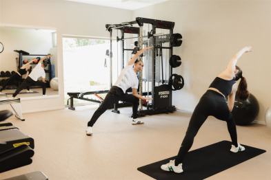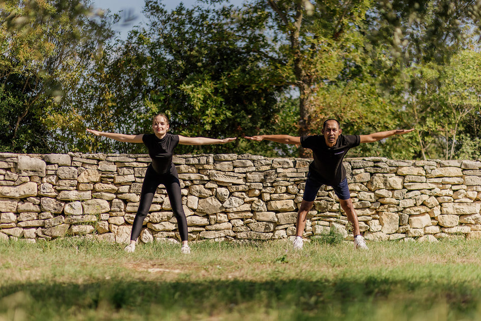 A guided morning session of dynamic stretching and low-intensity movement designed to awaken energy and elevate mood. Held outdoors beside the estate oak, it sets a balanced tone for the day ahead.