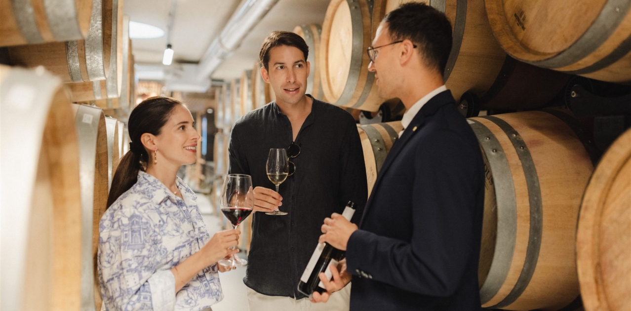 Krenite na elegantno putovanje kroz svijet vina Meneghetti. Iskustvo započinje intimnim obilaskom imanja – od sunčanih vinograda i panoramske krovne terase vinarije do proizvodnog prostora i tišine barrique podruma, gdje vrijeme i drvo strpljivo oblikuju karakter vina.